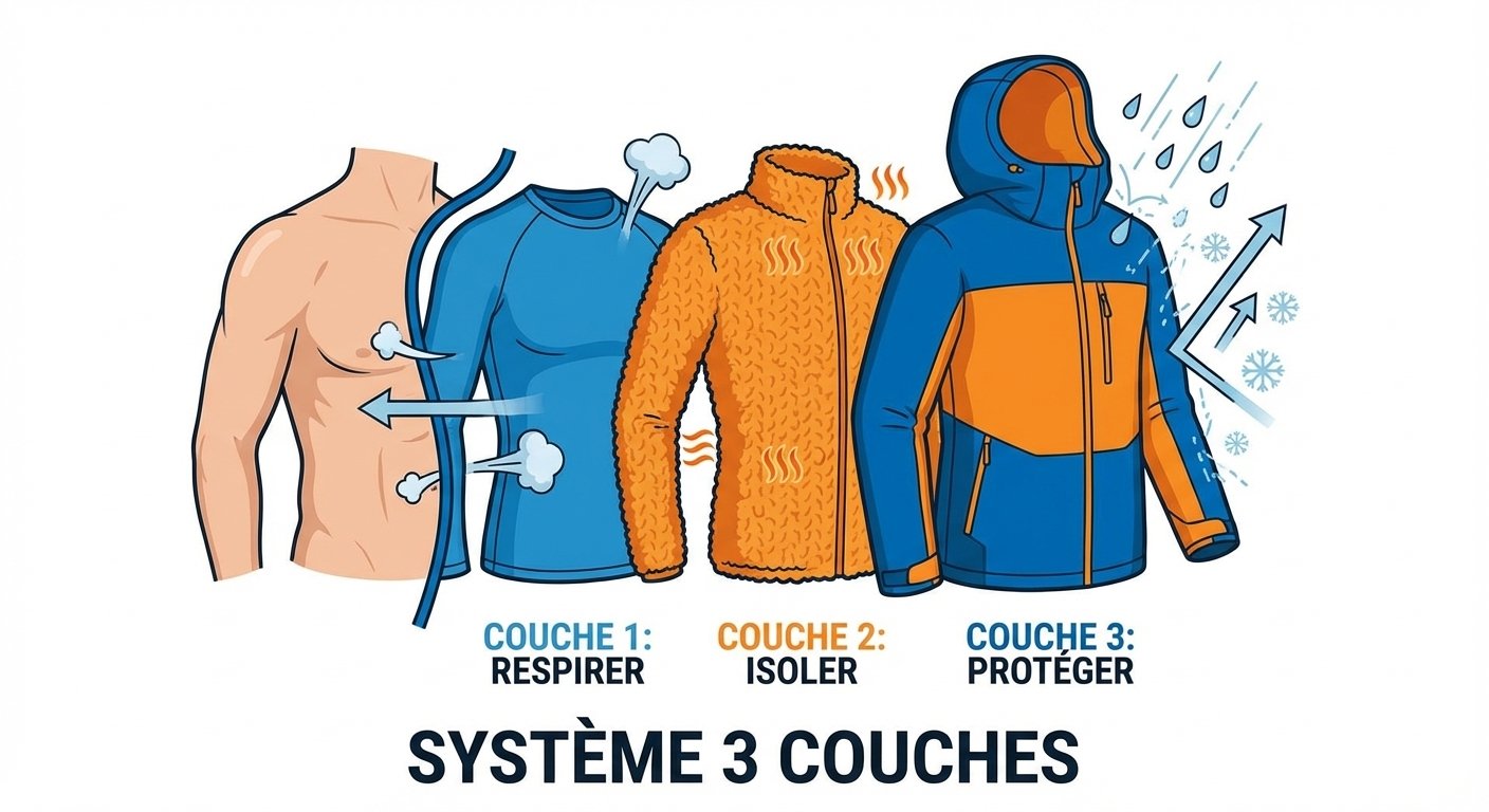 C’est l’erreur du débutant : empiler quatre T-shirts et deux pulls en pensant avoir chaud. Résultat ? Vous transpirez à la première descente, et vous gelez sur le télésiège dès que la sueur refroidit. Le secret des pros, c’est la gestion de l’humidité. Voici le système simple des 3 couches.